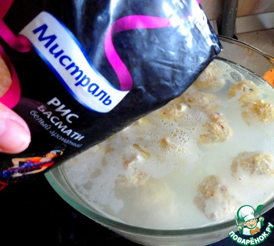 2,5 литра куриного бульона доводим до кипения, кладем туда клецки, рис Басмати белый ароматный ТМ «Мистраль» и нарезанную полудольками морковку.