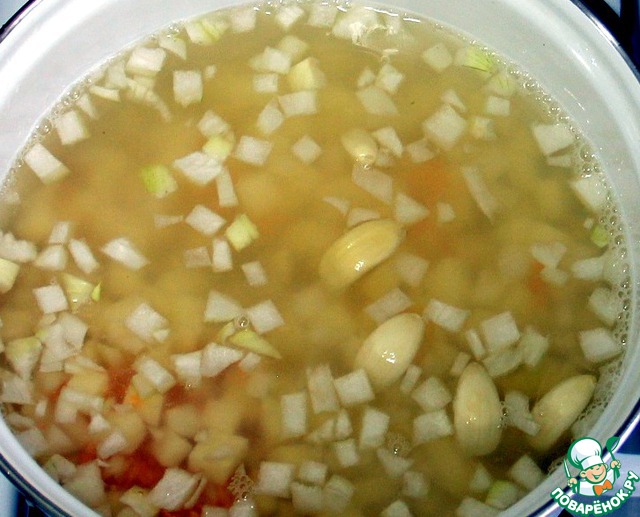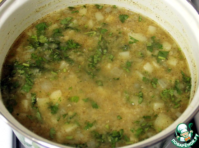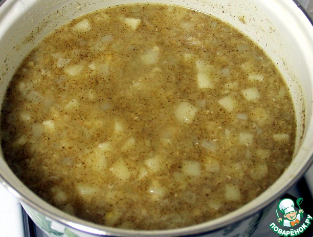 Получается вот такой суп. Выключаем огонь и оставлям на плите.