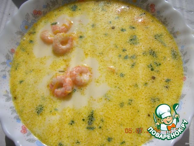 8.Растворяем три столовые ложки плавленого сыра и вводим 50 мл. сливок, закладываем все подготовленные продукты. Доводим до кипения и варим минут пять.