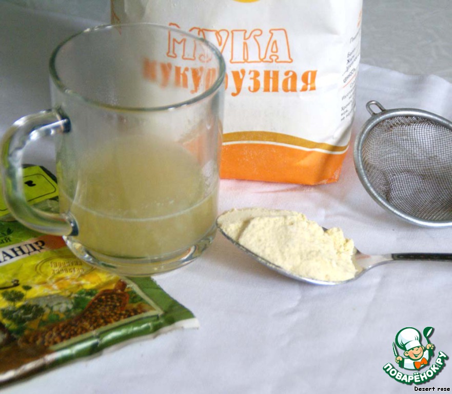 Отлить немного овощного отвара в стакан, остудить его и развести в жидкости кукурузную муку.