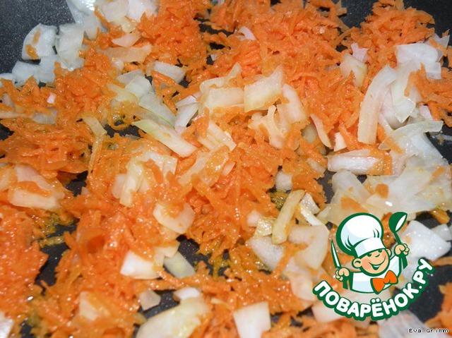 Морковку с луком обжариваем на растительном масле, в конце можно по желанию добавить пару щепоток сахара. Картофель и нашу получившуюся зажарку добавляем в супчик...