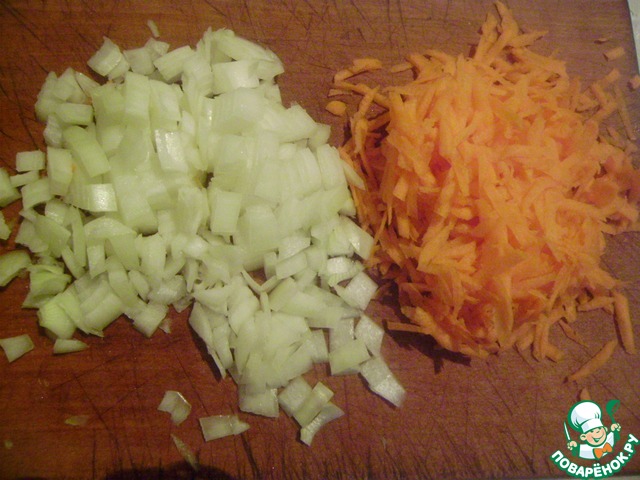 Лук мелко порезать. Морковь потереть на крупной тёрке.