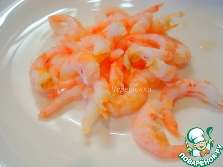 А затем – креветки. Так как креветки вареные, то варить дальше не нужно. Посолить, поперчить по вкусу.