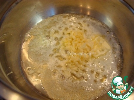 В кастрюле с толстым дном растопим сливочное масло и на маленьком огне обжарим чеснок в течение 1 минуты.