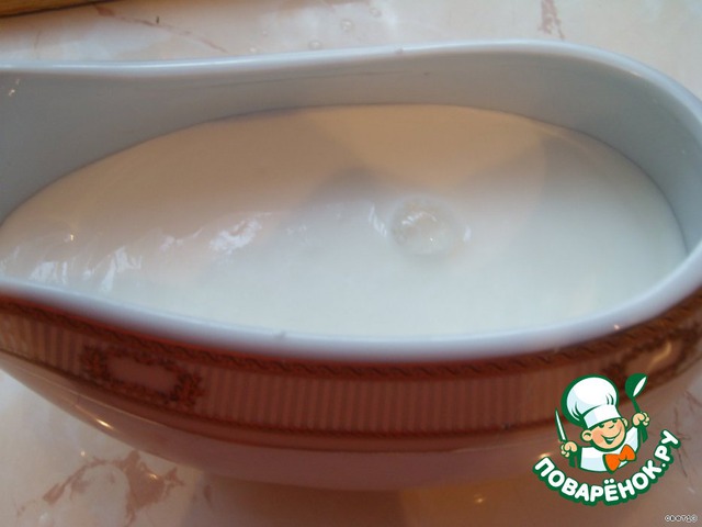 Пока наш суп чуть остывает,готовим заправку к нему.Кефир смешиваем со сметаной.Заправляем наш суп заправкой.В идеале сюда нужен катык или мацони.