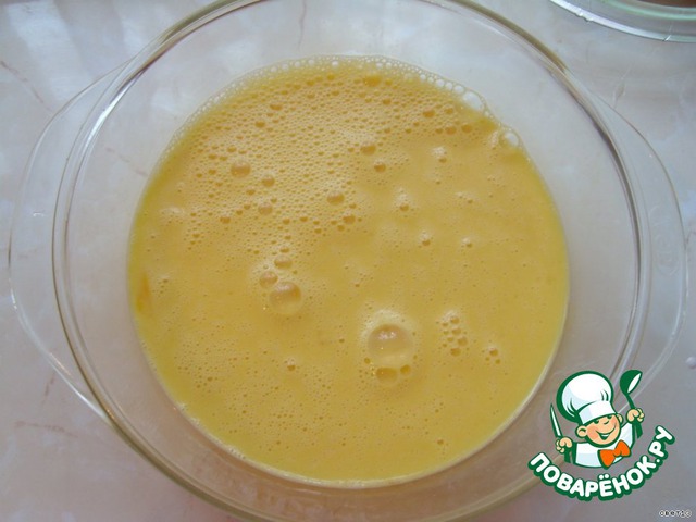 Добавляем в них стакан молока,четверть чайной ложечки соли,взбиваем.