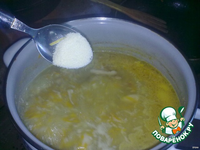За 5 минут до конца варки добавляем 3 ст.л. манной крупы.