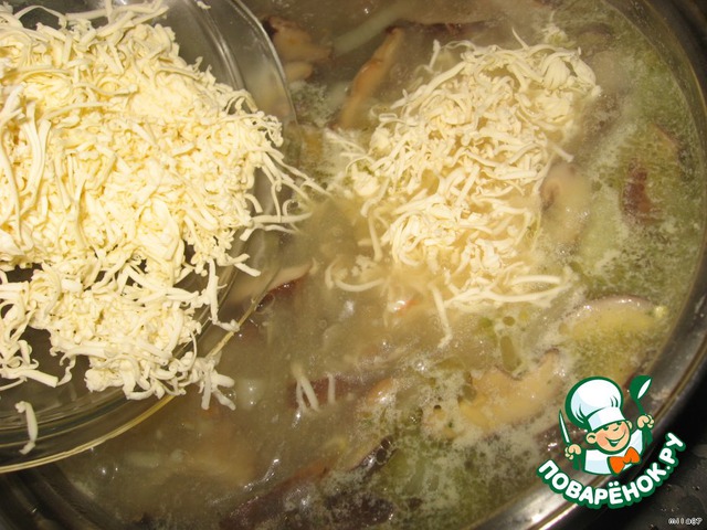Всыпаем в суп и кипятим, помешивая, пока сырковая масса не растворится.