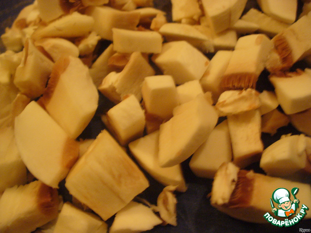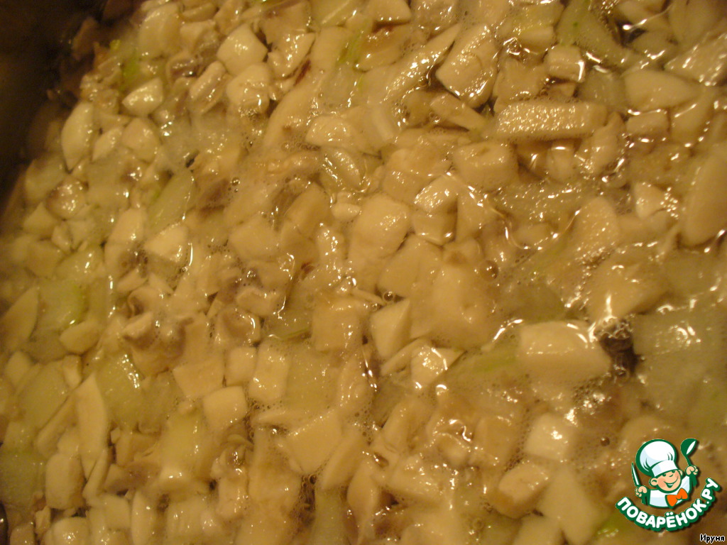 Можно вместо воды использовать грибной бульон - суп будет с еще более выраженным грибным вкусом и ароматом. Я вспомнила поздно о замороженном бульоне в морозилке, который остался из-под маринования белых грибов...
