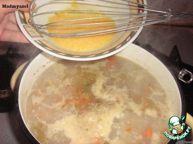 Еще через пару минут введите с помошью венчика заранее взбитые 2 яйца.