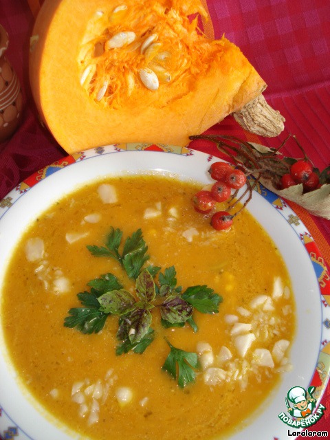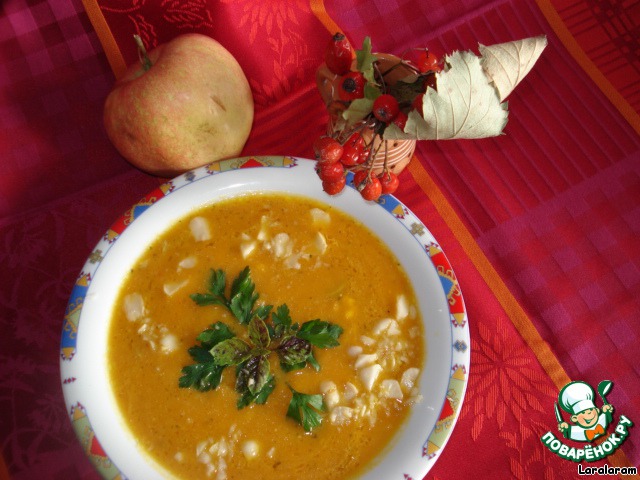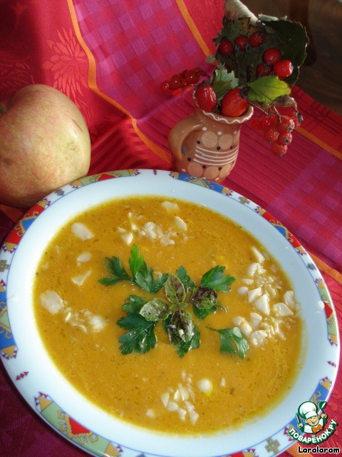 | Суп-поэма вкуса с яблоками, курицей, сыром. Супчик этот назвала Бархатным - он и по консистенции, и по своим вкусовым качествам ласкает все вкусовые рецепторы. Он не такой уж быстрый в приготовлении, зато стоит того, чтобы им заняться. Тем более подготовить продукты можно накануне, а "собрать" суп, когда вам удобно. Тем паче, говаривают, что тыква дюже полезный овощ (или это ягода, кто знает?)... |