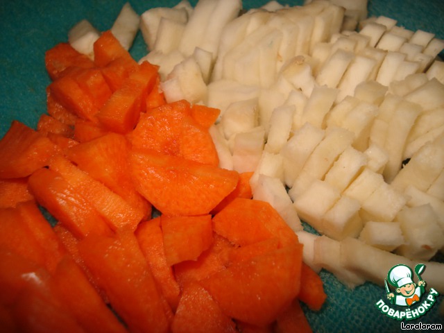 Ах, вот ещё что... картофель не используем, я - автор, что хочу, то и ворочу! на мой вкус не вписывается он в эту вкусовую гамму!