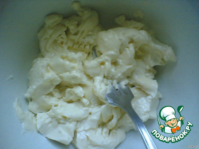 Пока жарятся овощи, выложить в мисочку сыр, немного размять его вилкой.