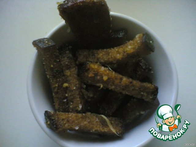 К такому супу хорошо подать гренки. Гренок у меня не было, но зато были чесночные сухарики, их я и подала к супу - было очень вкусно.
