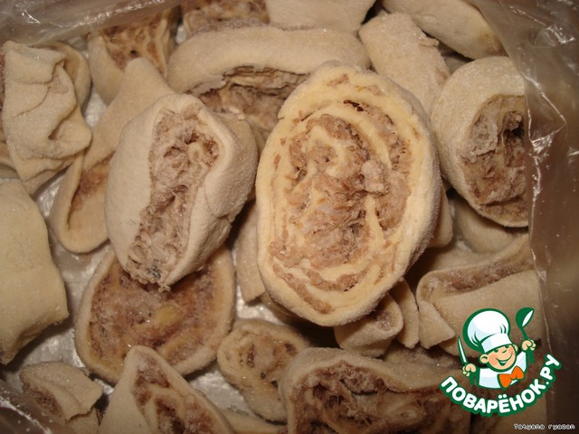Пельмени у меня были приготовленны по рецепту Викули (nikulj) "А-ля пельмени" http://www.povarenok.ru/recipes/show/13539/, я их как-то приготовила про запас и заморозила. Добавить их в кастрюлю сразу же после того, как опустили туда лук с морковью. Посолить.