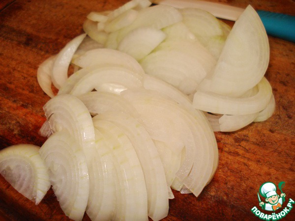Лук почистите и нарежьте тонкими полукольцами.