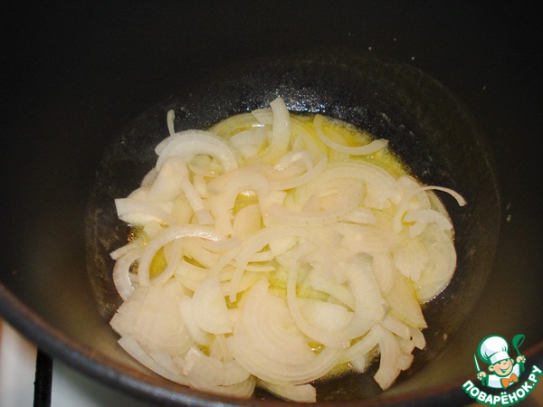 К луку добавить бульон. И варить еще 20 минут.