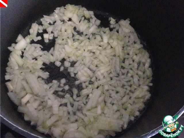 Луковицу очищаем, режем мелким кубиком и обжариваем в разогретом растительном масле.