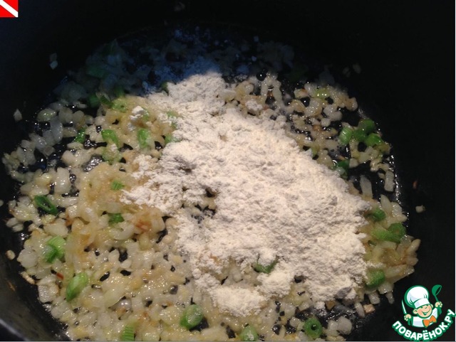 И порошком карри. Я добавила 1/2 ч. л. - вы ориентируйтесь на свой вкус.