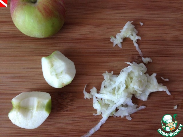 Мелкое кислое яблочко очищаем от кожуры, разрезаем, удаляем серединку, натираем на средней терке. Опускаем в бульон