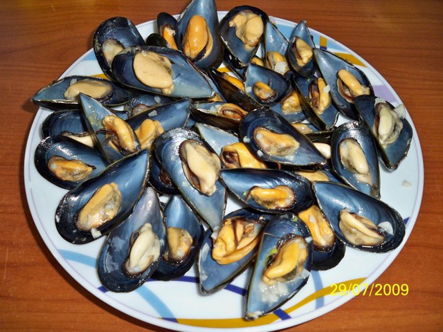 Помыть мидии, предварительно замочив их в холодной воде минут на 15.