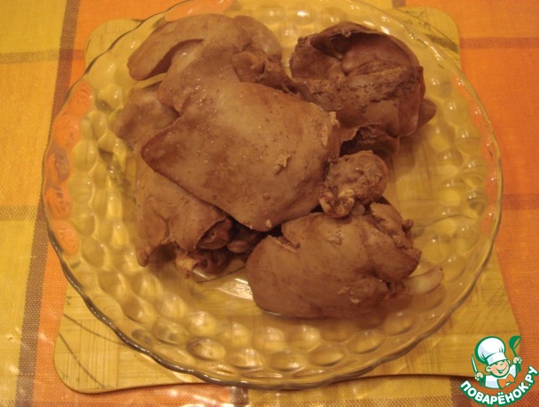 Нужно заранее отварить куриную печень, чтобы она успела остыть. 250 г отварной печени – это примерно 5 куриных печеночек. Отвар из-под нее я не использую, так как начиталась, что в него переходят все вредные вещества, но если у вас печень от собственных курочек, в корме которых вы уверены, можете сварить супчик на этом бульоне.