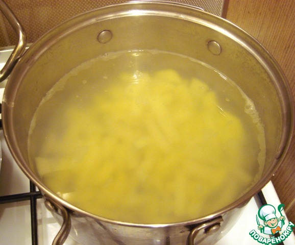 Вода закипела – бросаем нарезанную соломкой картошку.