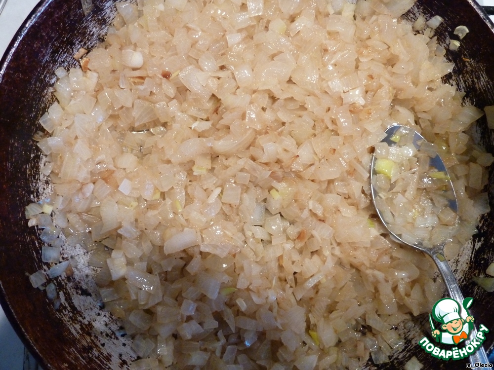 Обжариваем лук на сливочном масле до золотистого цвета.