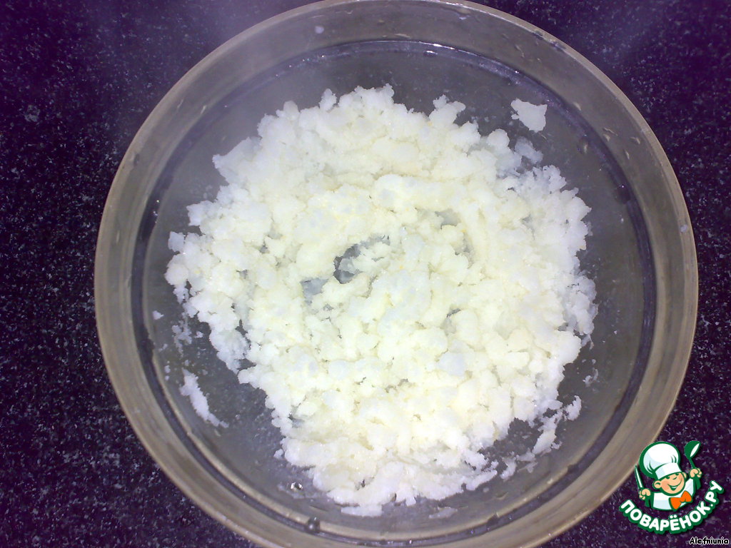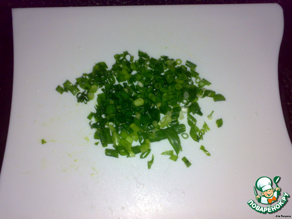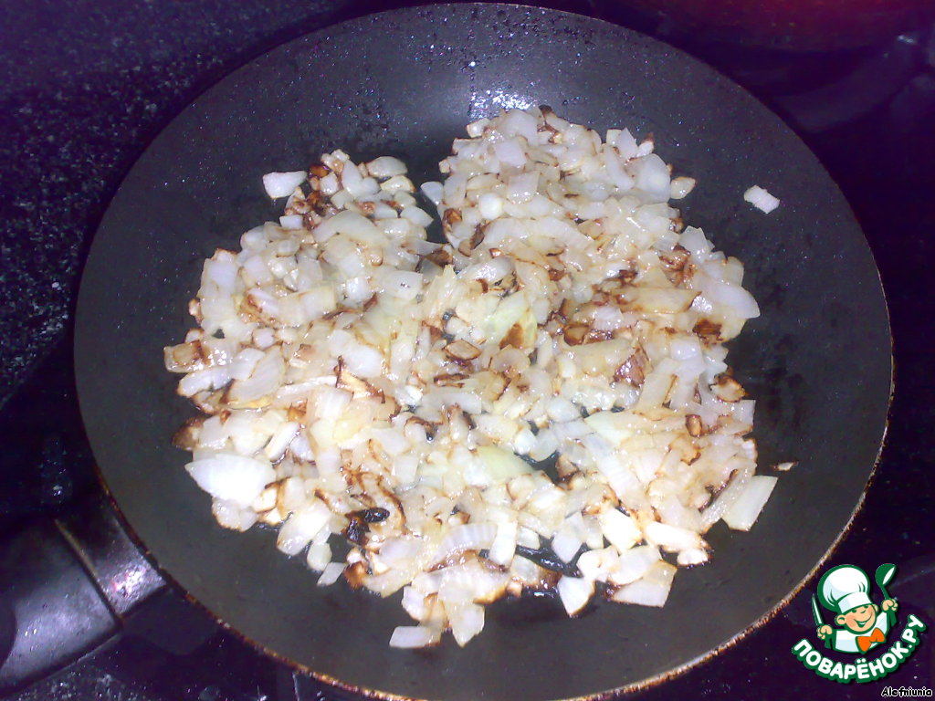 Лук измельчить и обжарить до золотистого цвета. В оригинале рецепта вместе с луком обжаривают кусочки сала, но в этот раз я делала без него.