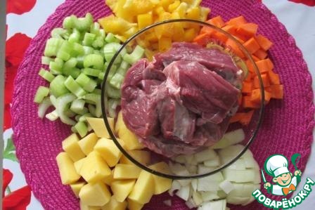 Нарезаем ингредиенты достаточно крупным кубиком.