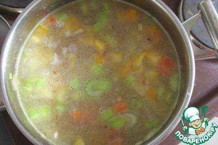 Заливаем в кастрюлю 1,5-2 л горячей воды, суп должен быть густым. Доводим до кипения, всыпаем щедрую горсть зеленой фасоли и варим минут 15-20 до мягкости овощей.