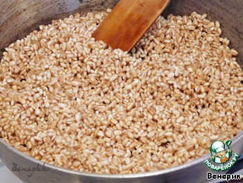 Затем, в отдельной сковороде на маленьком огне и на символическом количестве растительного масла высушивается и слегка поджаривается. Начинать жарить нужно на самом маленьком огне и часто помешивать. Есть тенденции у этой крупы пригорать. В супе такая "перловка" готовится быстрее, хотя и не разваривается. Кроме того, исчезает присущая таким супам «склизкость-вязкость» бульона и появляется приятный хлебно-кофейный аромат.