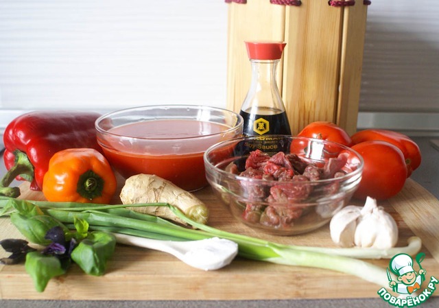 Томатный суп со сладким перцем и говядиной