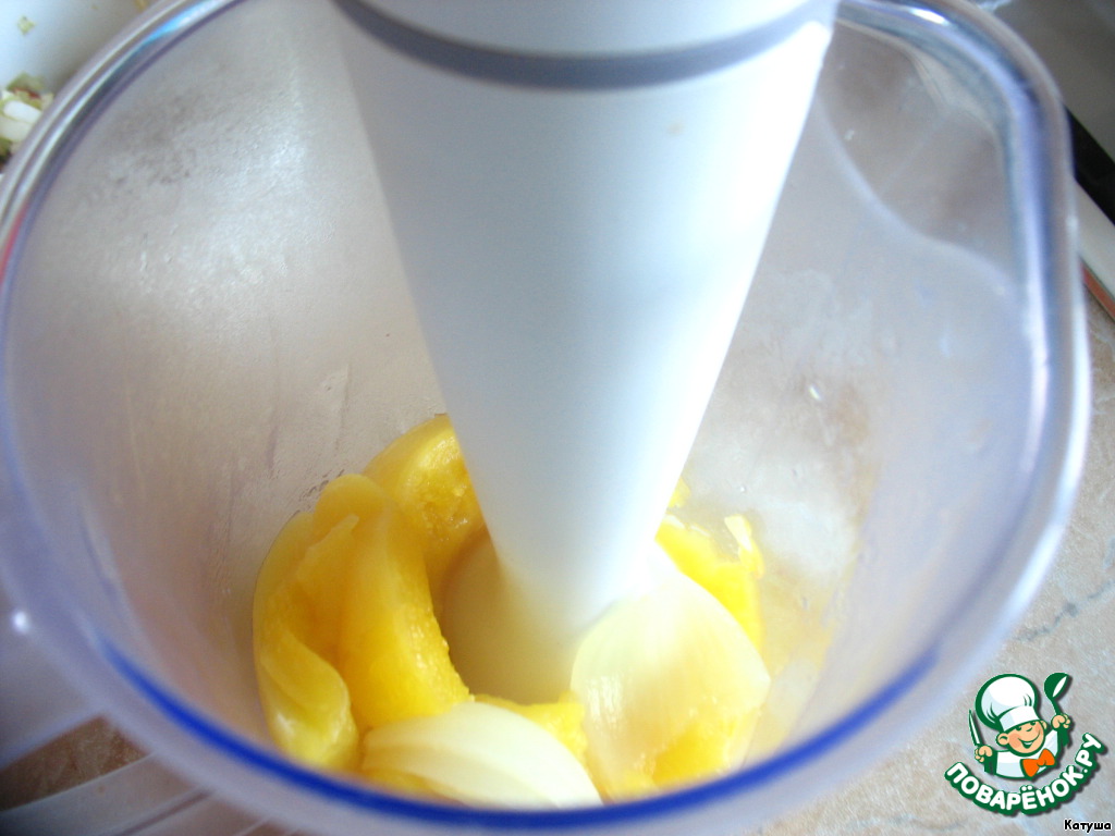 Готовые, мягкие тыкву, лук плюс сливочное масло пюрируем блендером,