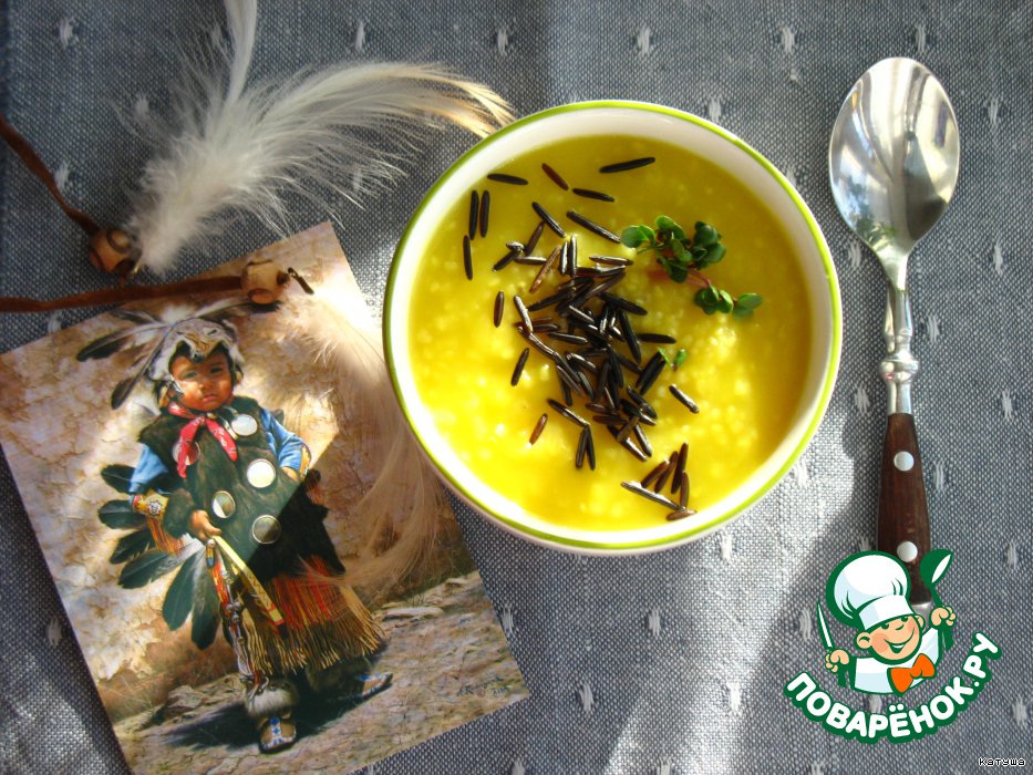 Кукурузный суп с печeной тыквой и диким рисом "Вождь краснокожих"