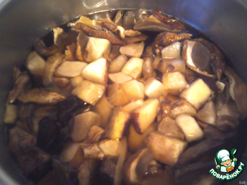 Замочить сушеные грибы (с вечера).