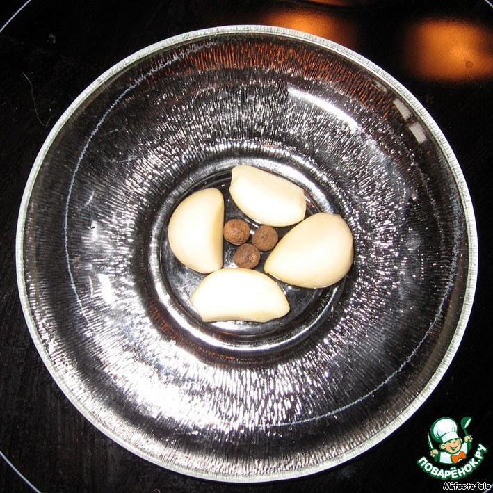 Не теряя времени даром, готовим специи: чистим чеснок (одна из главных специй на моей кухне), достаем из закромов перец душистый горошком.
