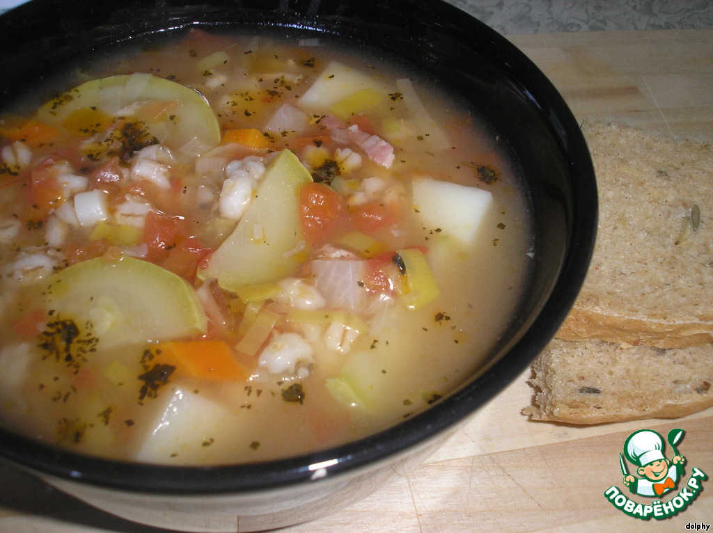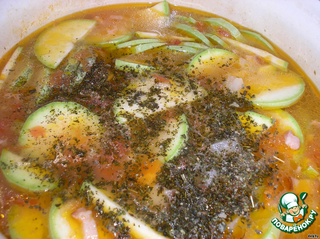 Добавьте кабачок и картофель. Поварите 20 минут до их готовности.