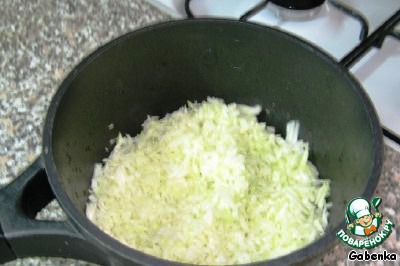 2. Нарезанной капусты должно быть немного меньше половины кастрюли. Кастрюлю лучше взять толстостенную или с антипригарным покрытием, так как блюдо будет очень густое, в процессе приготовления может пригореть.