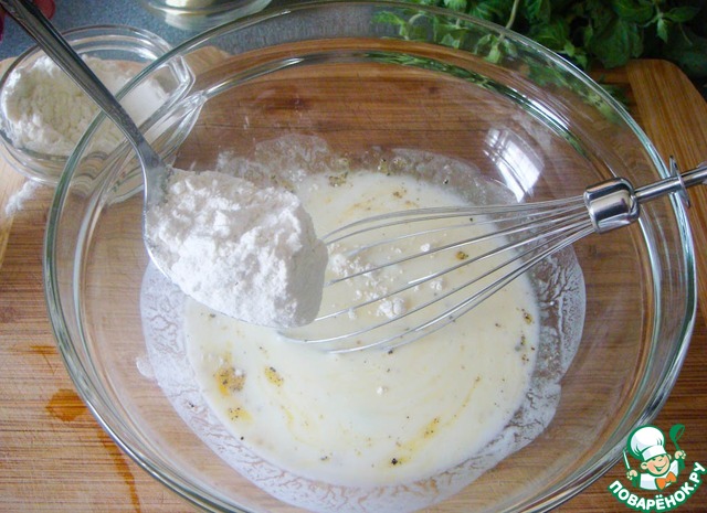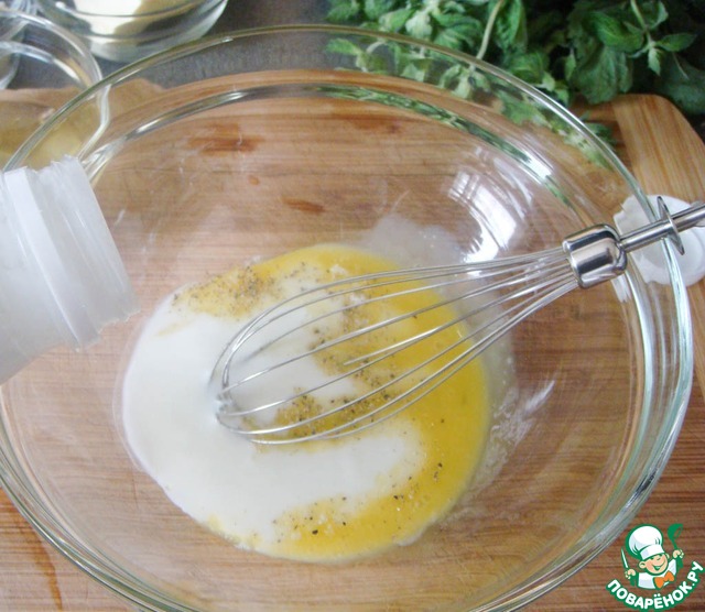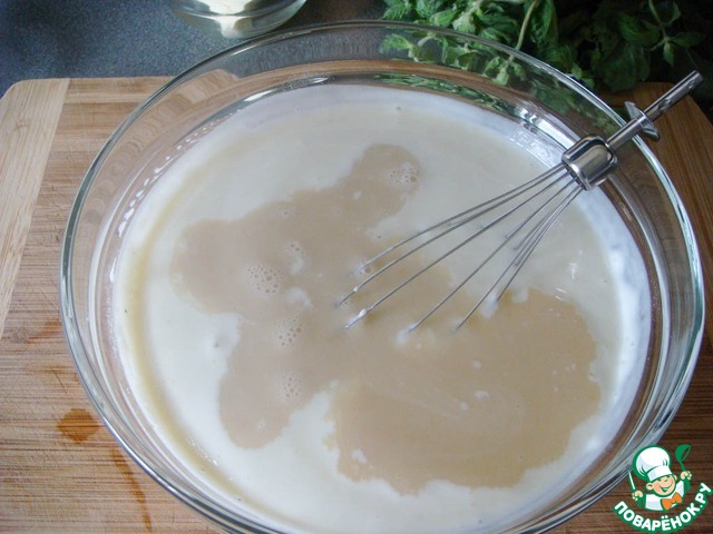 Постепенно добавляя йогурт, перемешивать с помощью венчика.