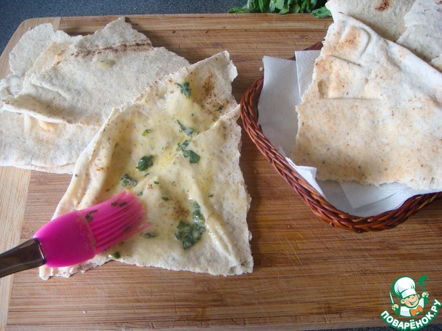 Оставшимся растопленным маслом смазать лепешки из пресного теста для подачи.