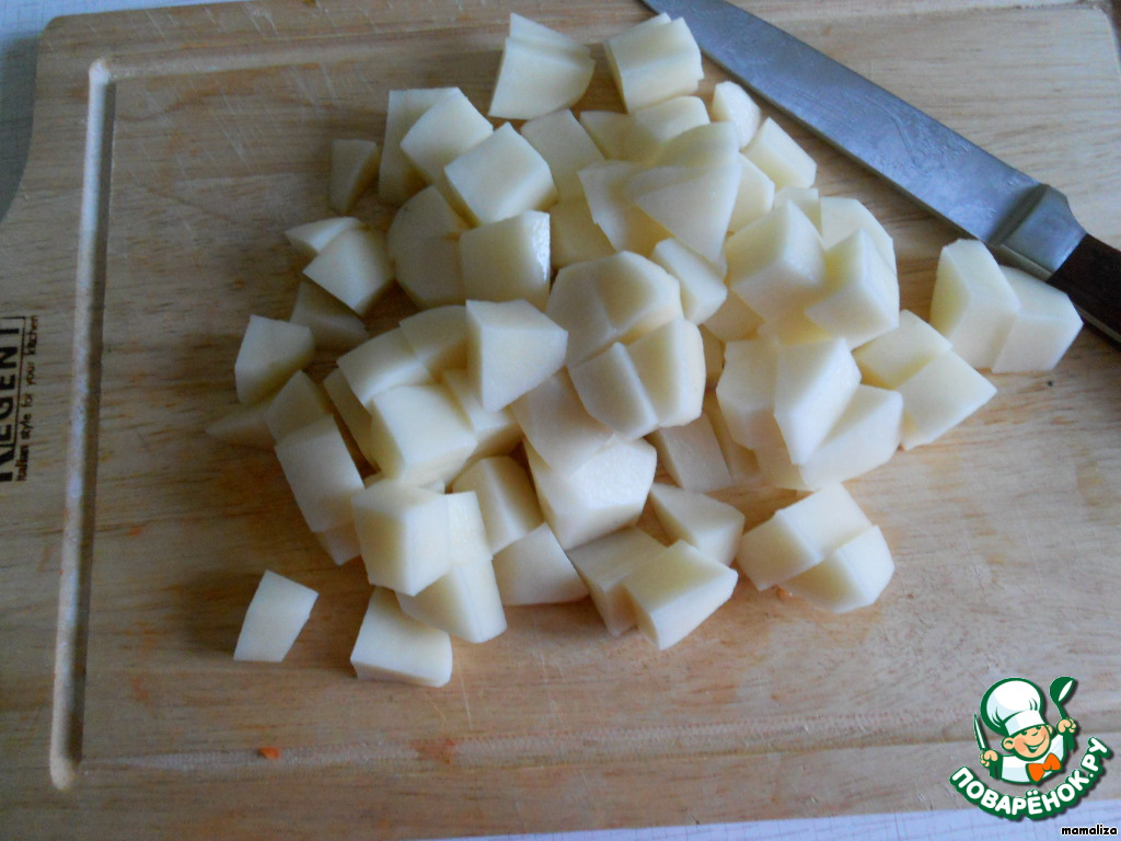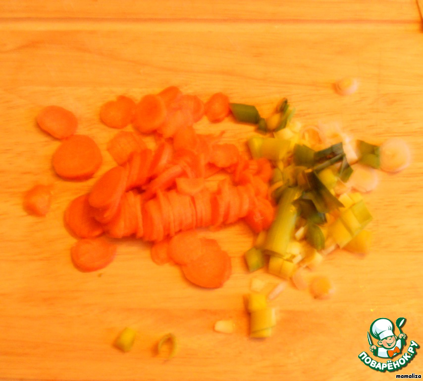 Печенку промываем, опускаем в кипящий бульон, варим еще минут 20. Затем потрошки необходимо вытащить, а бульон процедить. И снова все соединяем и ставим на огонь.