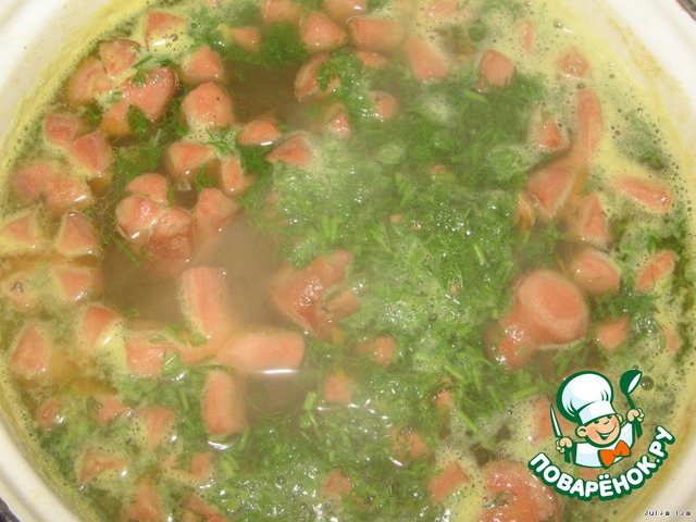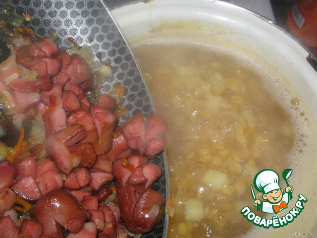 | Захотелось горохового супчика по-быстрому. Решила использовать сосиски. Получилось очень даже... А название - смотрите фото. |