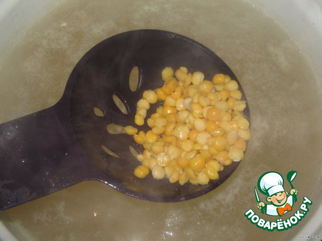Горох замачиваем в холодной воде, чтобы быстрее сварился.