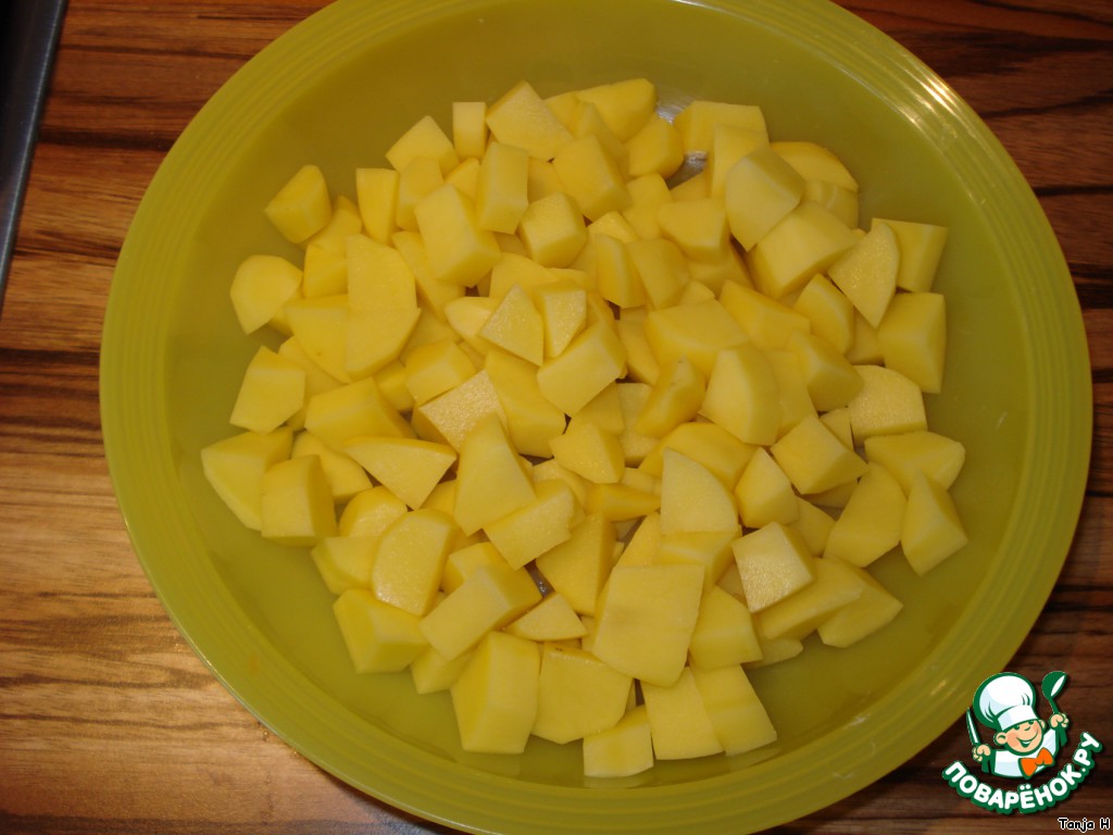 Картофель порезать кубиками, как обычно на суп.