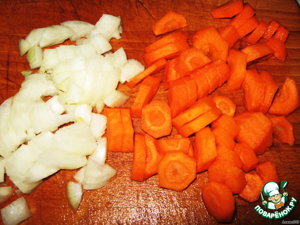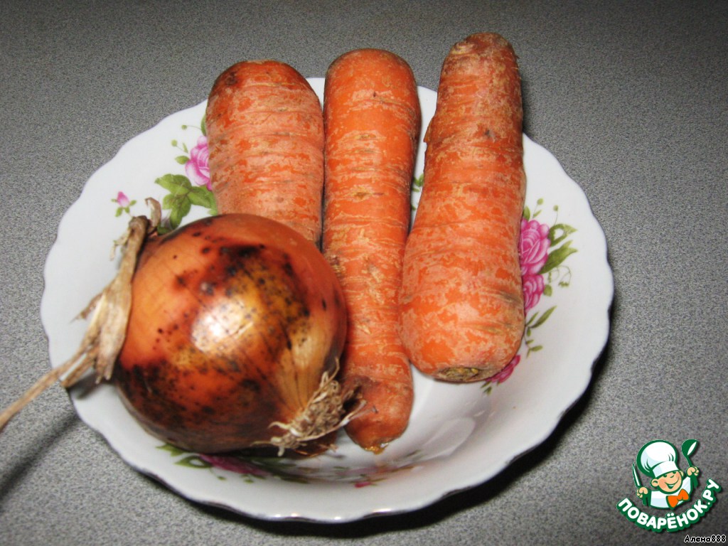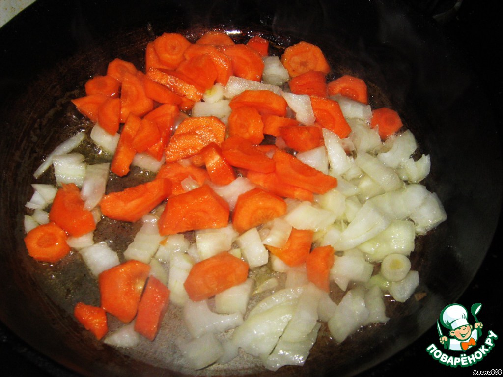 Затем на свежем подсолнечном масле делаем зажарку из морковки и лука.