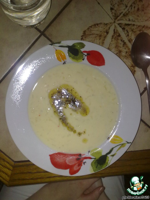 Суп разлейте по тарелкам, в середину каждой добавьте ложку масляной подливы. Приятного аппетита!!!!