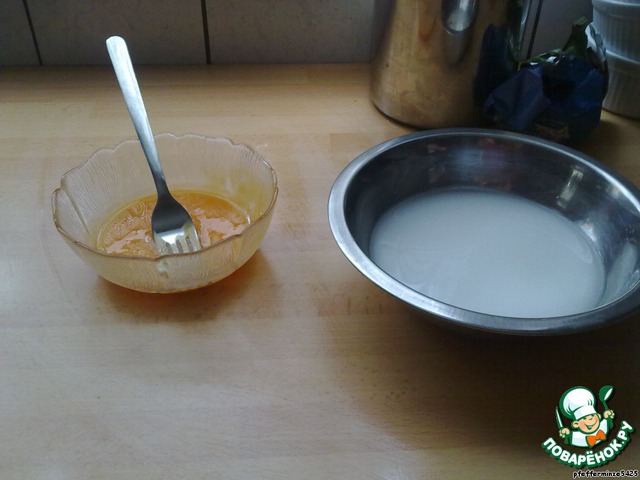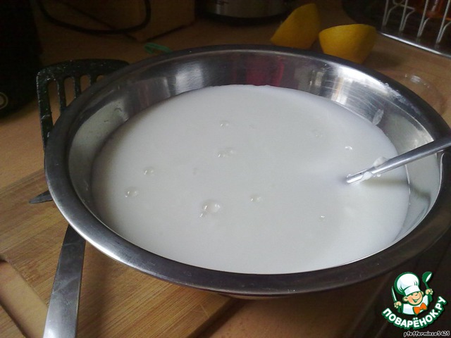 В это время размешиваем крахмал и добавляем его в йогурт. Также добавляем желтки.