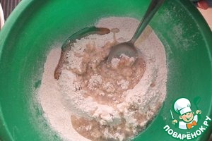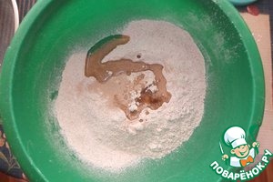 Вводим теплую водичку понемногу, перемешиваем сначала ложкой потом руками.