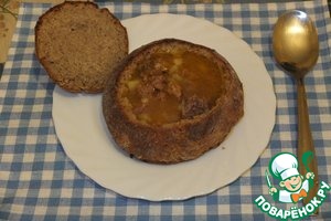Наполняем булочку густым супчиком, накрываем крышечкой и подаем к столу!